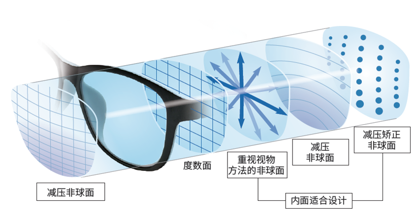 REST-W雙面減壓鏡片,外面采用了輔助矯正舒適的減壓非球面設(shè)計(jì),內(nèi)面采用多重適合設(shè)計(jì)(重視視物方法的非球面、減壓非球面、減壓矯正非球面),雙面結(jié)合,幫助視近過程中的眼部調(diào)節(jié)。